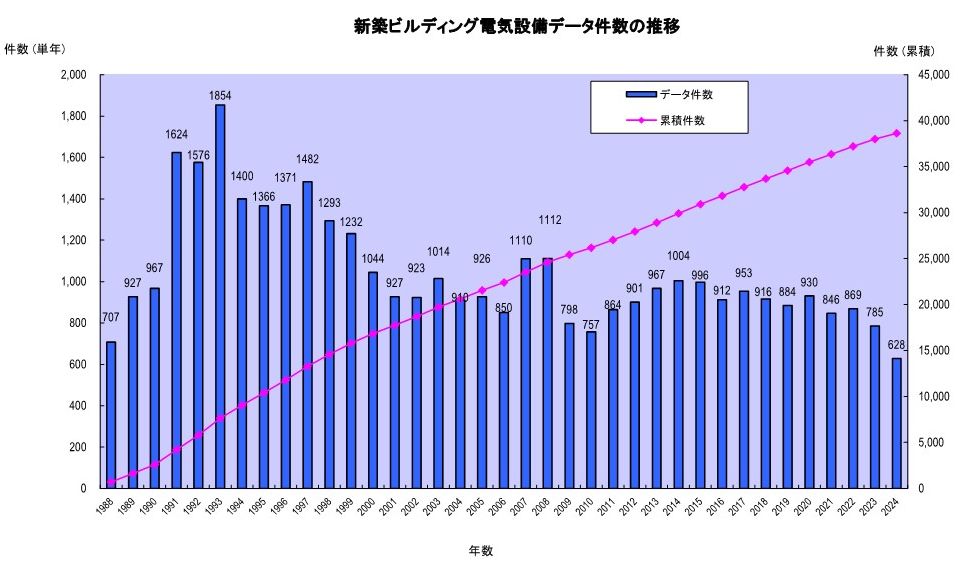 (一社)電気設備学会及び(一社)日本電設工業協会は,「新築ビルディング電気設備調査」のデータベース化及び解析の電算処理化を1988年竣工分の調査結果から導入し,2024年までに累積で約38,000件の物件をデータベースとして蓄積してきました。このデータベースをD&Dデータと呼びます。